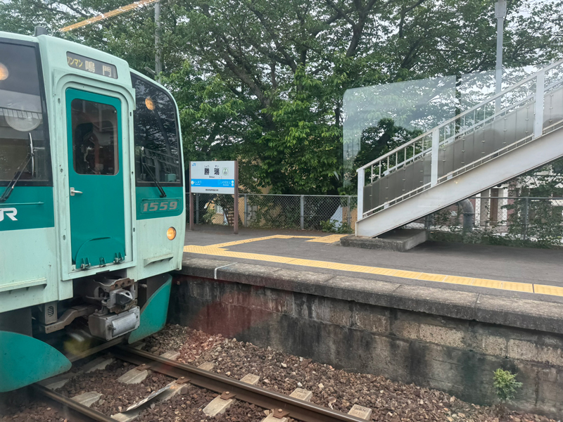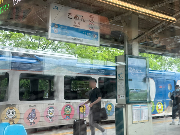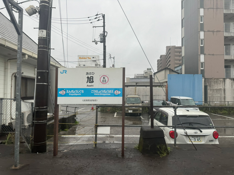 山間部の鉄橋の上にある駅「土佐北川駅」や、勾配の急な場所にあるスイッチバック駅の「新改駅」などの秘境駅をどんどん進んで、土佐平野に降りてきた南風号は、土佐山田、後免駅に停車します。