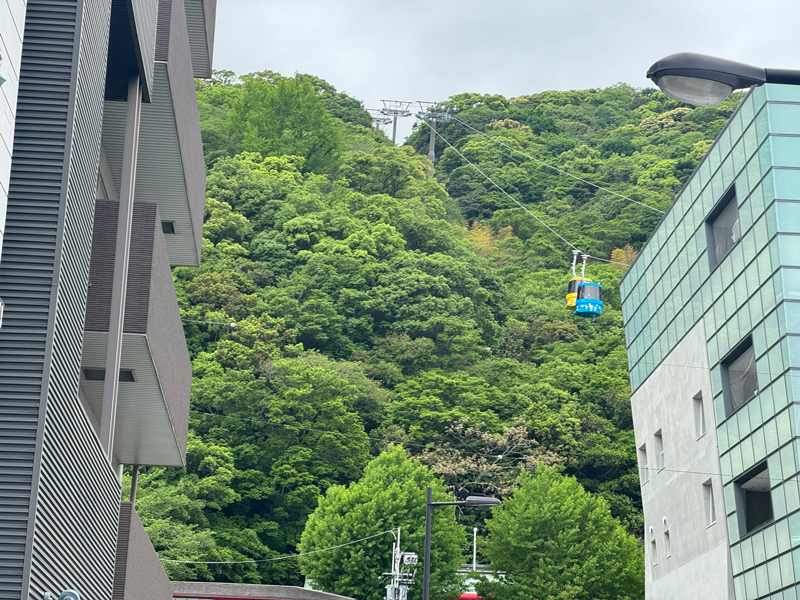 そんなこんなを考えながら歩いて行くと大通りの終点へたどり着きまました。大通りの終点には大きな山があり、これが徳島市のシンボル「眉山」です。阿波おどり会館からロープウエイで山頂へも行けるようで、まずは眉山へ向かう事にしました。