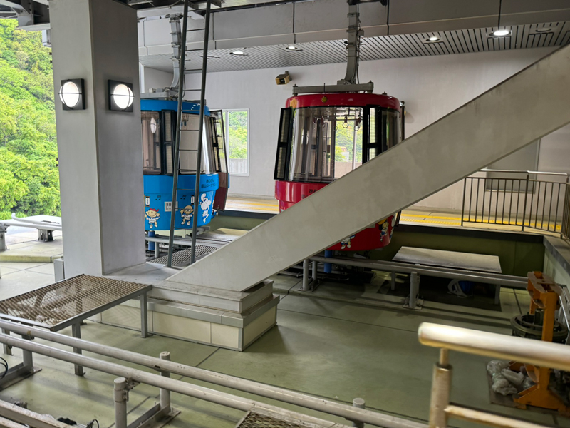 ロープウエイは15分間隔で運行しております。乗車して約10分しないうちに山頂へ到着です。