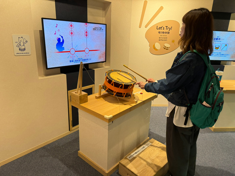 太鼓の達人のような、阿波踊りのリズムに合わせて締め太鼓をたたくゲームがあるのですが、これが非常に難易度高い^^;やってみますが乗れないリズムが館内に響き渡ります💦