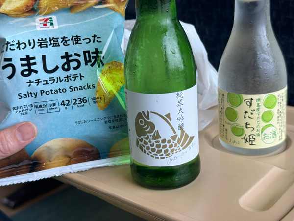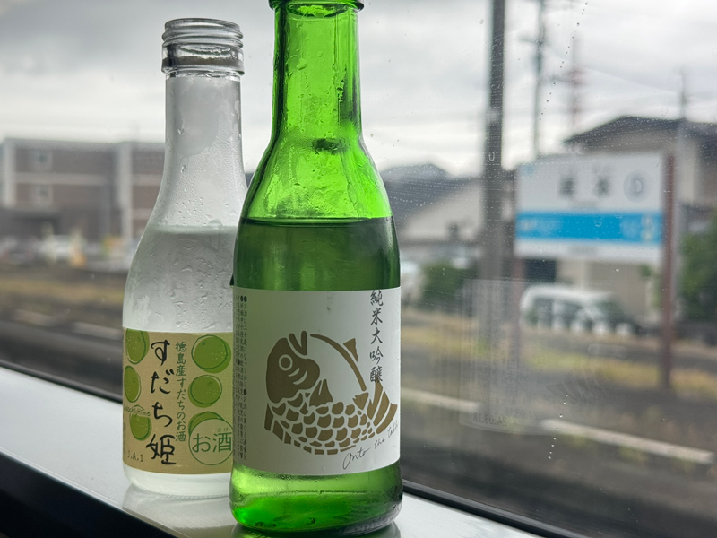 ここから阿波池田までは1時間20分ほどの乗車時間です。先ほど徳島駅バル横丁で購入したお酒などを飲みながら車窓を楽しみます。これが鉄道旅の醍醐味ですな。