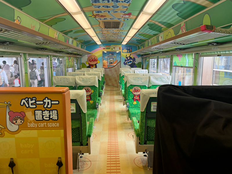 この日は2号車にアンパンマン車両が連結されていてお子さん連れのファミリーが楽しそうに乗車していました