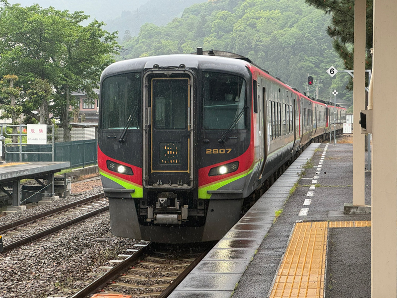 再び車窓には太平洋が望め、ようやく雨も上がってきた様子。列車は約2時間かけて中村へと到着です。