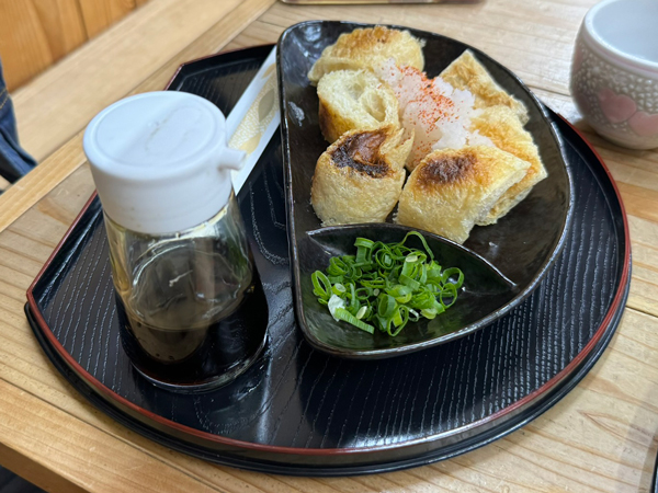 ぼけ祖谷汁は素朴な味わいに、大きな野菜と固くて有名な祖谷岩豆腐やお揚げが入っていて食べ応えあります。また、ぼけ揚げはサクサク感と噛み応えがある触感。いやーまたまたお酒が欲しくなりますなあ。