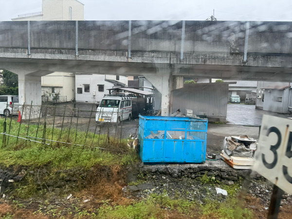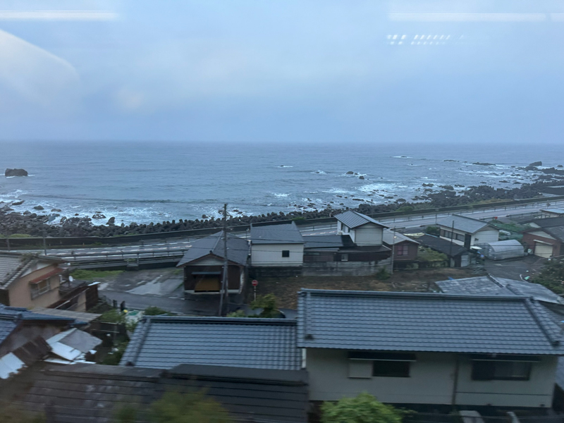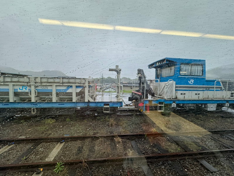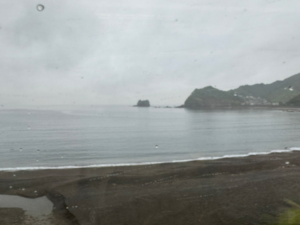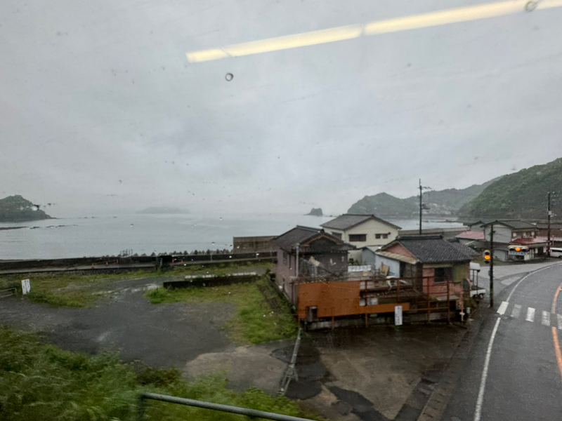 須崎から土佐久礼間は太平洋の際を通り晴れていれば美しい海沿いの車窓が広がりますが、私の腕が悪いのかほろ酔いのせいかカメラのピントは雨粒にピントが合います💦