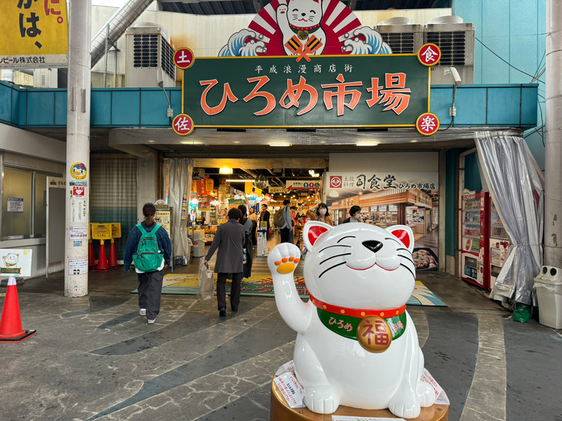 はりまや橋を訪れた後はアーケード街になっている帯屋町通を1㎞ほど進んで行くとひろめ市場に到着。