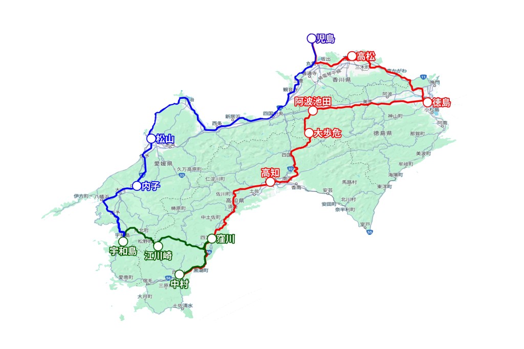 旅一日目、児島→高松→徳島→阿波池田→大歩危→高知→中村まで鉄道でやって来ました。