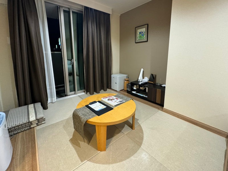 部屋の広さは22㎡、ベッドサイズ122cm×195cmと広々の部屋に畳敷きのスペースがあります。
