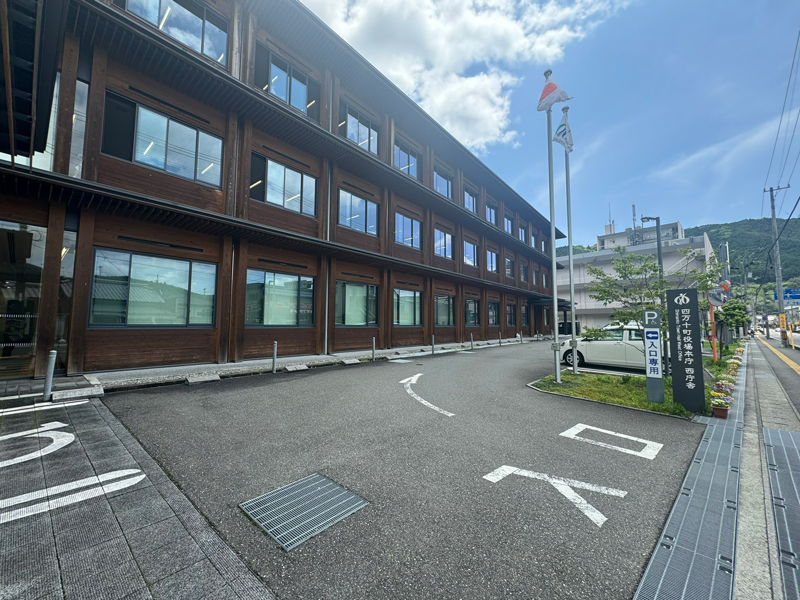 駅の西側には材木をあしらった質感の立派な建物がありまして、四万十町の役場になります。