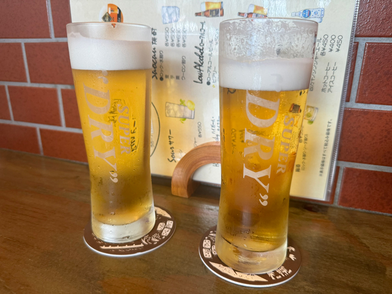 唐揚げが美味しそうなので、私は唐揚げ定食をチョイス。嫁ハンはおつまみとして唐揚げ単品をアテにビール飲みます。
