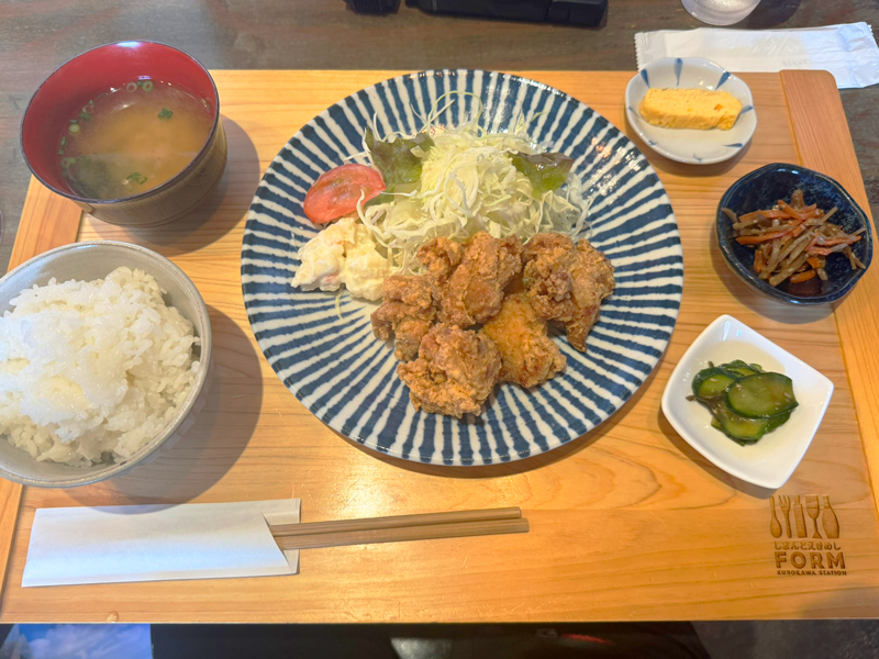 定食は唐揚げ以外に小皿が幾らかありかなりボリウムがあります。