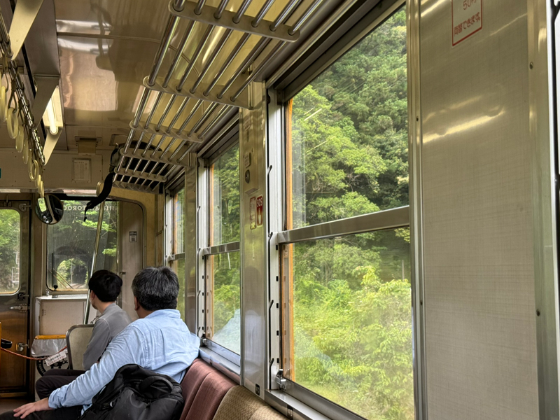 車窓はゆっくりと四万十川が近づいたり離れたりしながら、ディーゼル音を轟かせて進みます。のどかなローカル線の旅は時間を忘れさせてくれます。