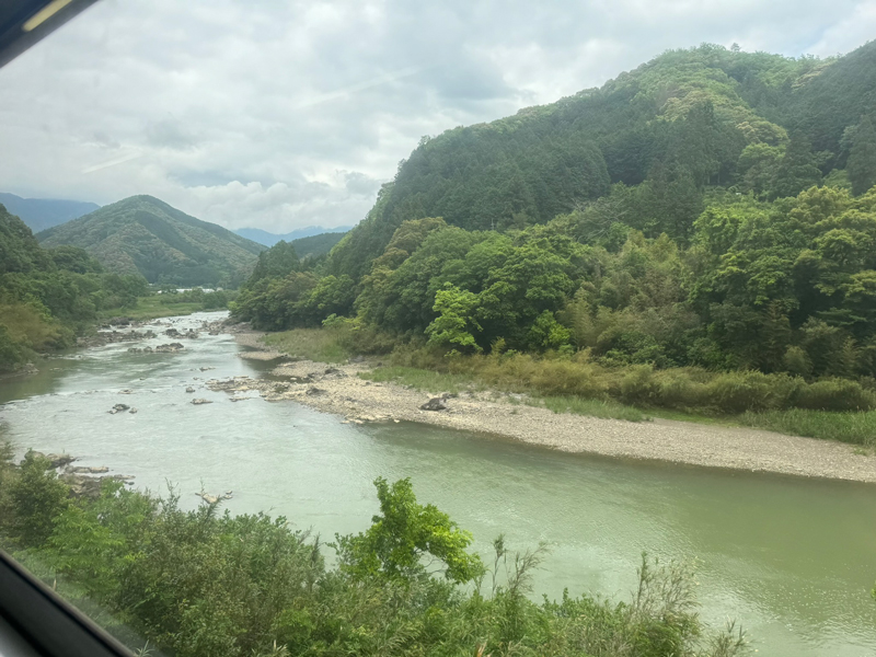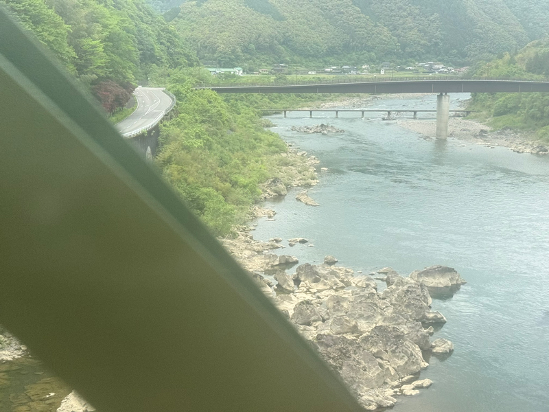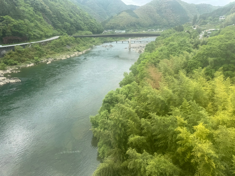 大きく蛇行する四万十川に沿って進んで行く車窓は雄大で素晴らしい。