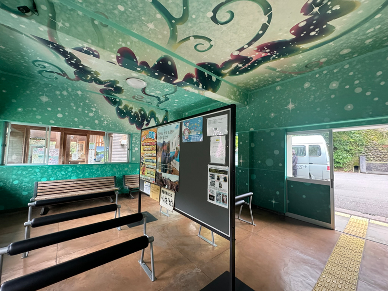 待合室は最近リニューアルされたよう壁紙が艶やかでした。