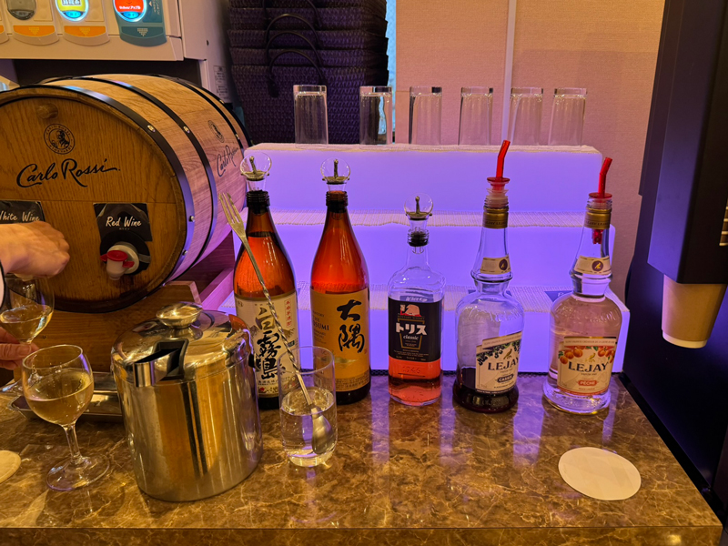日本酒、焼酎、ウィスキー、ビールにワインとこれらが自由にいただけます!これは飲兵衛夫婦には嬉しいです。