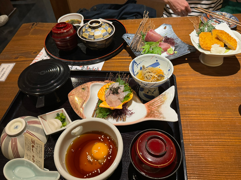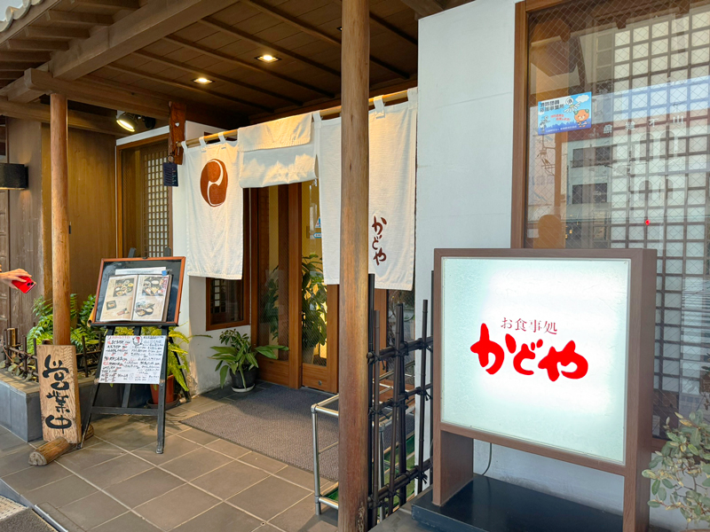 ホテルから歩いて数分のところにかどやと言うお店があり、鯛めしで有名なお店です。こちらでいただくことにいたしました。さすがに人気店だけあって数人待ちです。