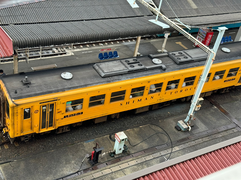 では発車時間が近づいたのでホームへと向かい、黄色い「しまんトロッコ」と書かれた1両編成の気動車に乗り込みます。