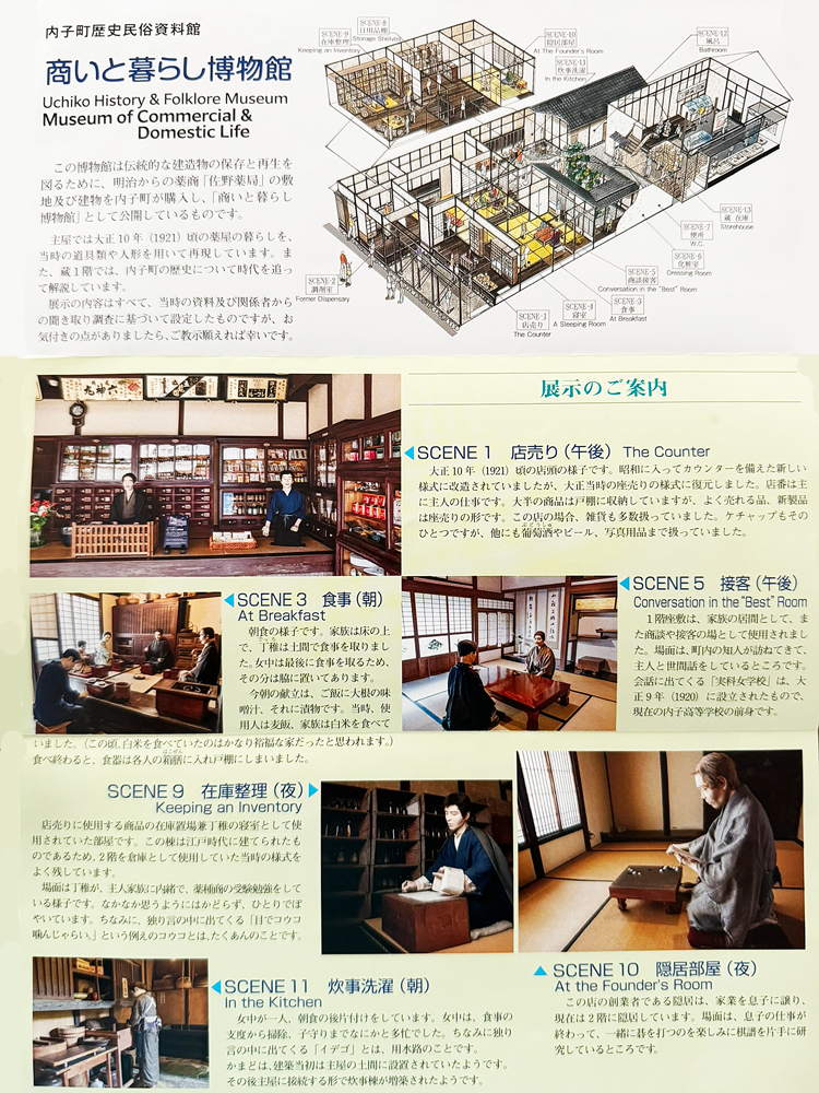 館内は明治時代の薬商「佐野薬局」を内子町が購入し、当時のリアルな商家の暮らしや仕事の様子を再現した博物館で中々見ごたえがありそうです。