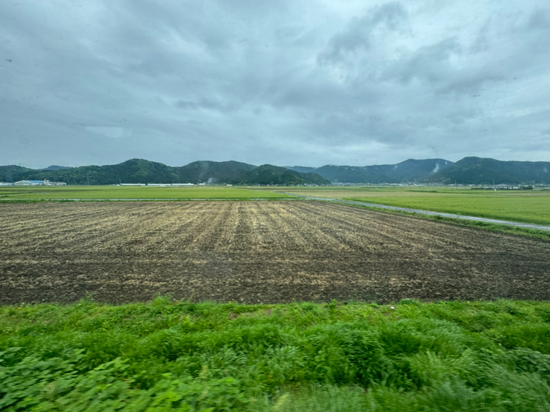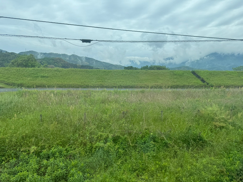 西予市の中心卯之町駅に停車。しばらく盆地の田園風景の中、直線の線路を爽快に進んで行きます。