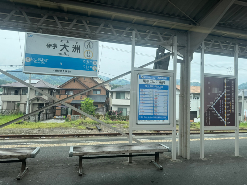 現在は3㎞少々のトンネルをぶち抜いて一瞬で大洲盆地へ出ると、城下町が広がる伊予大洲駅に到着。