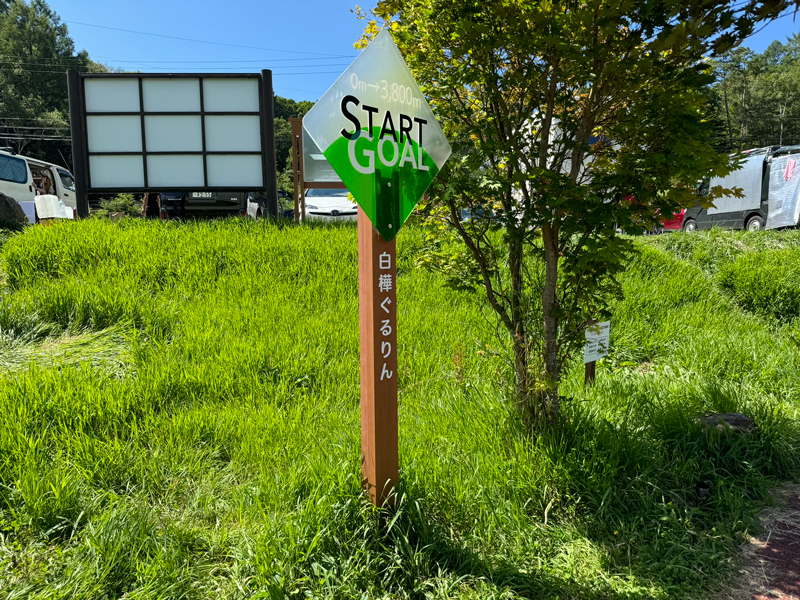駐車場にはキャンピングカーや車中泊仕様の車がずらりと並び、湖畔でデイキャンプやアウトドアを楽しむ人々の姿が見られます。私たちも湖畔を少し歩き、自然を満喫しました。「白樺ぐるりんスタートゴール」という立札の前で、ランニングやサイクリングを楽しむ若者たちが元気に行き交います。静かでありながら、活気も感じられる湖畔の朝でした。