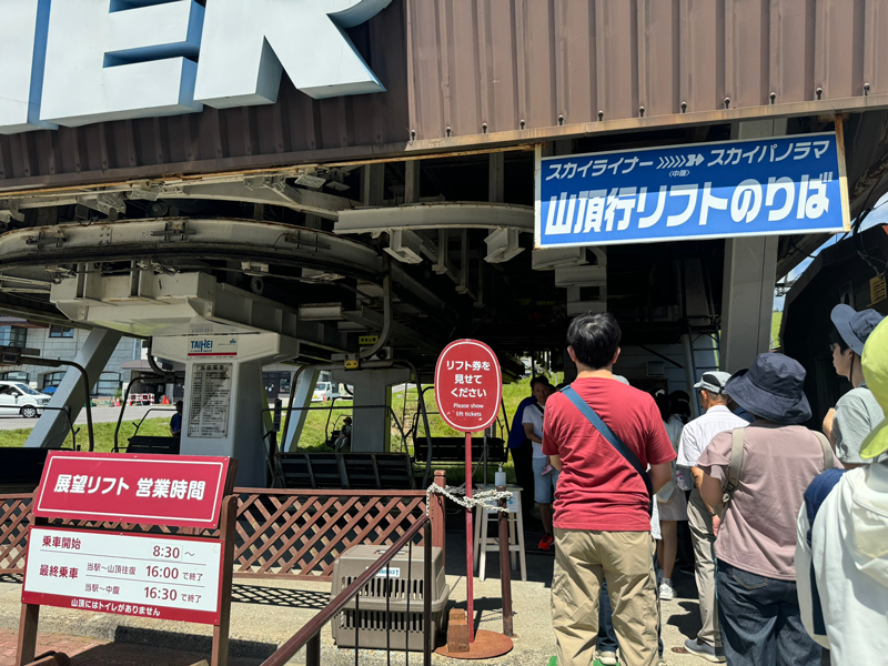 リフトは「スカイライナー」と「スカイパノラマ」を乗り継ぎ、往復で一人2500円。