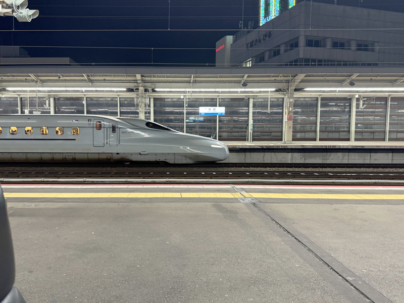 今日は日曜日の夜ということもあり、のぞみ号の自由席は混み合っています。新神戸まではデッキで立っていましたが、なんとか席が空いたので一息つきつつ京都へ。