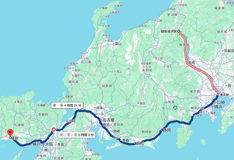翌日は只見線の終点・小出まで乗り通し、上越線で越後湯沢へ向かいます。越後湯沢からは少し贅沢に新幹線グリーン車で東京へ。東京からは今回初めての夜行寝台列車『サンライズ瀬戸』に乗り込み、姫路には朝5時半に到着します。