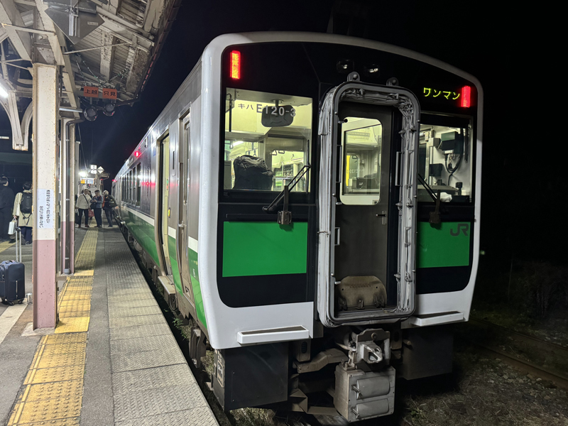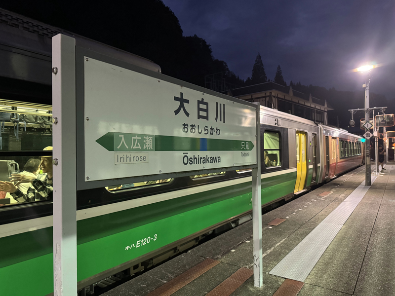 この厳しい自然環境の中を走る列車の頼もしさを感じながら、六十里トンネルを抜けると、すでに外は真っ暗です。