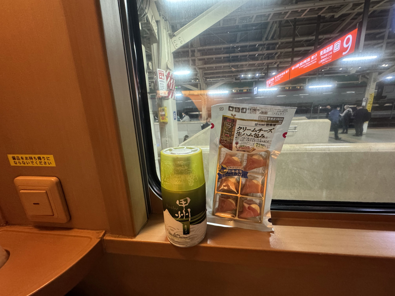 発車まで少し時間があるので、駅構内で晩酌用のお酒とつまみを調達。