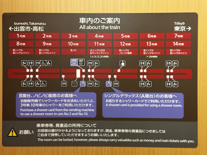 サンライズ瀬戸はサンライズ出雲と併結した14両編成で、私が乗車したのは5号車です。