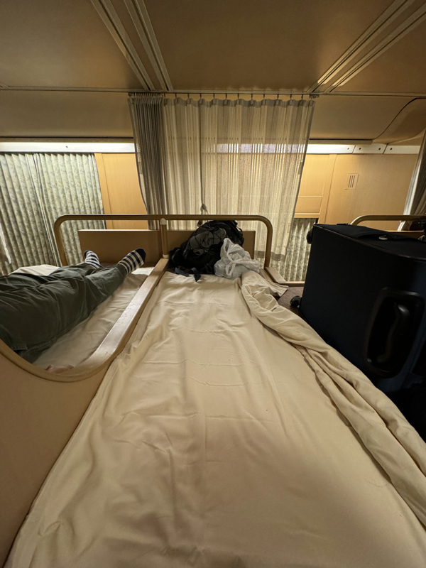 その方はこれから四国を巡る予定とのことで、楽しそうな様子が伝わり、私も旅の終わりが近いながらも心が温まりました。一期一会の出会いが、これまた夜行列車旅の醍醐味!