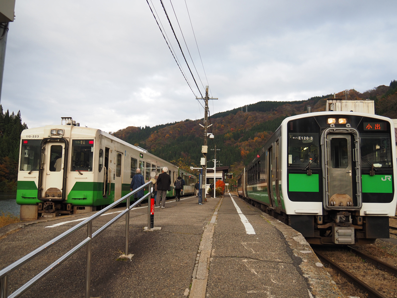 列車は大白川駅に到着。冬期通行止めの国道に代わる交通手段として重要な駅です。