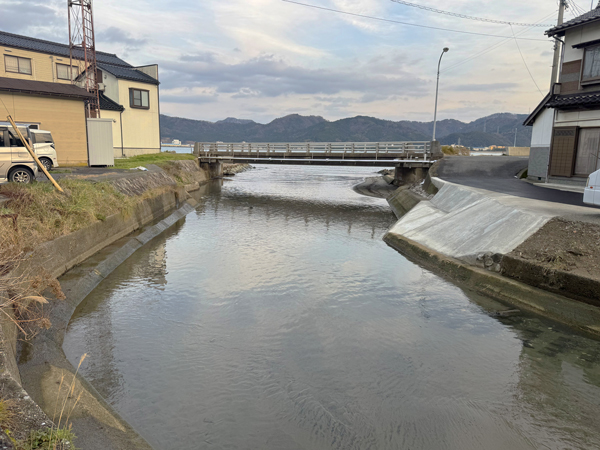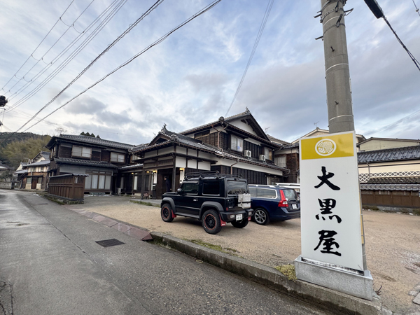 車でわずか5分ほど走り、今回の宿「大黒屋」さんに到着。矢田川を渡り、海沿いに宿が集まるエリアにある温泉民宿です。