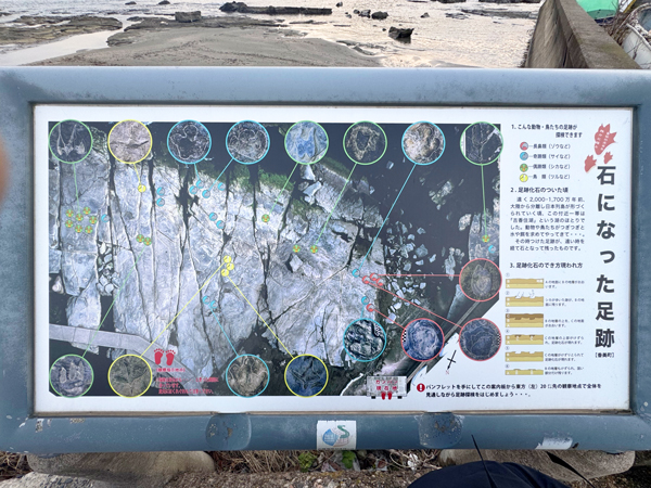 はるか昔の香住にはゾウやサイが生息していた事に驚きながら、まじまじと足跡の確認に夢中。すると大きな波がやってきてずぶ濡れになりそうになり、焦りました💦
