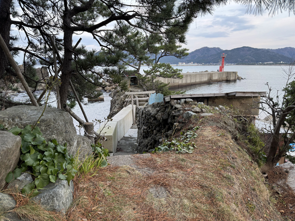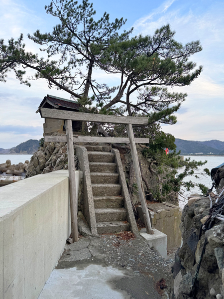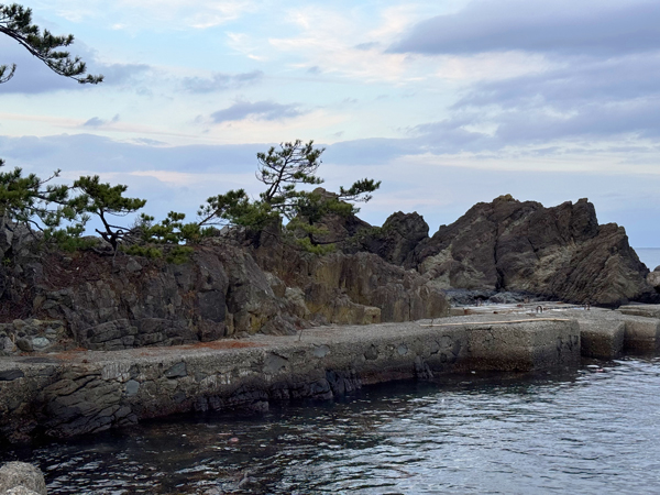 ここにはお地蔵さんが鎮座し、防波堤からは荒々しい岩々が広がる景色が望めます。