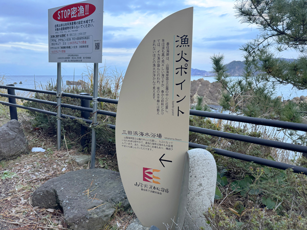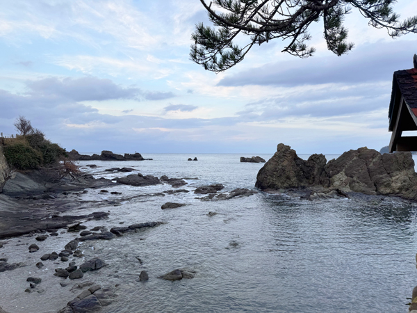 宿を出て少し歩くと、日本海が広がります。海沿いの道を散歩してみることにいたしましょう。