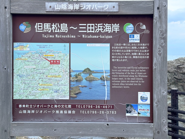 展望台からは、荒々しい岩々が連なる磯の風景が広がっています。また、奇岩や景観に関する説明が詳しく掲示されており、それを読みながら景色を眺めると、新たな視点からこの地の魅力を再発見することができます。