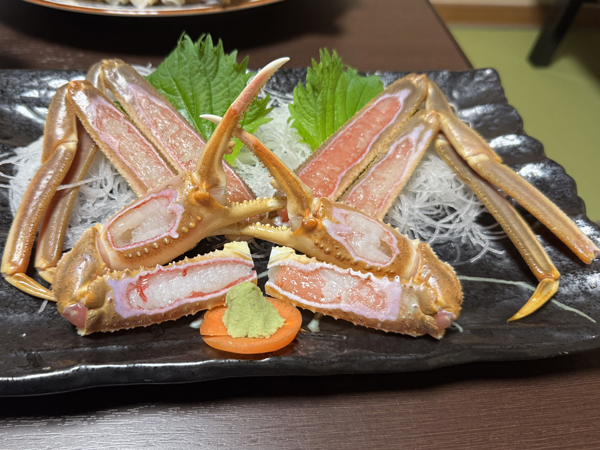 宿へ戻るとすでに5時半。美しい景色を存分に楽しんだ後は、お待ちかねの「カニ」。