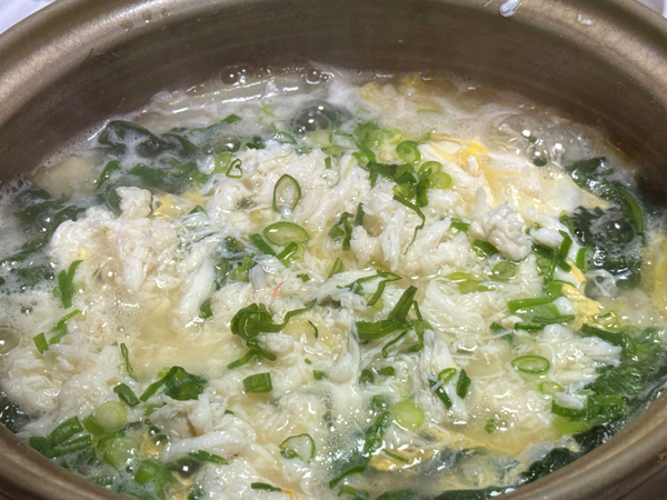 お腹がいっぱいになりそうなところで、締めのカニ雑炊が登場。