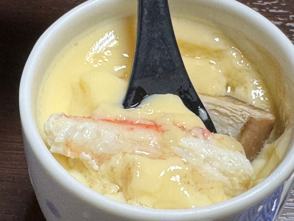 朝食もまた豪華で、カニの味噌汁に茶碗蒸し、焼き魚、湯豆腐、煮物、豆、お漬物と盛りだくさん。
