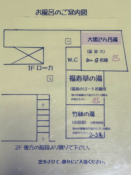 私は食事前に「福寿草の湯」に浸かったので、今度は広々とした大浴場「大黒さん乃湯」へ。