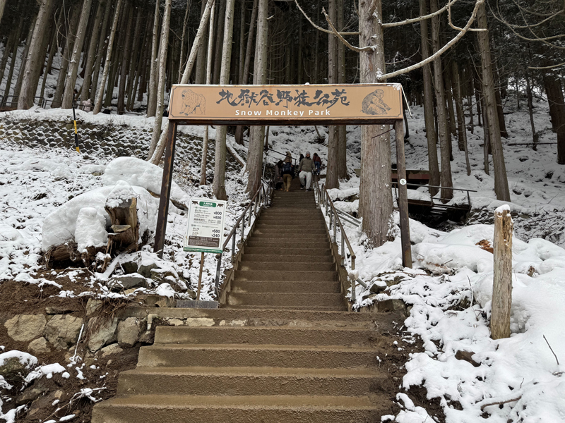 後楽館の入り口を過ぎると、再び石段が見えてきました。ここがようやく地獄谷野猿公苑の入り口!長い道のりでしたが、ついに到着です。