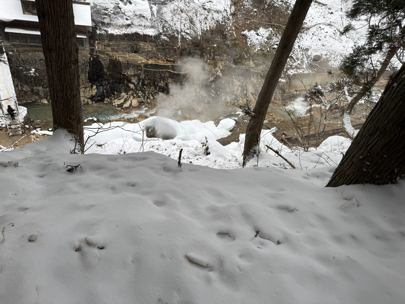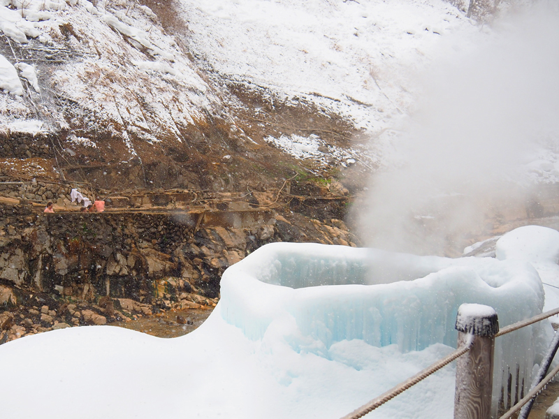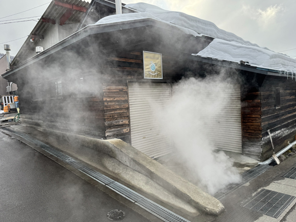 そんな歴史ある宿のすぐそばには、巨大な氷の窯のようなものがあり、そこから黙々と湯けむりが上がっています。