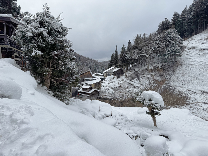 辺りは真っ白な雪に包まれ、時折、大粒の雪が舞い落ちてきます。風情ある静かな景色にしばし見惚れながら、少し休憩を取ることにしました。