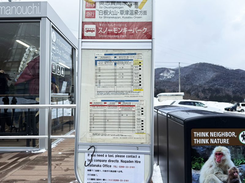 AM12:50 スノーモンキーパークバス停到着