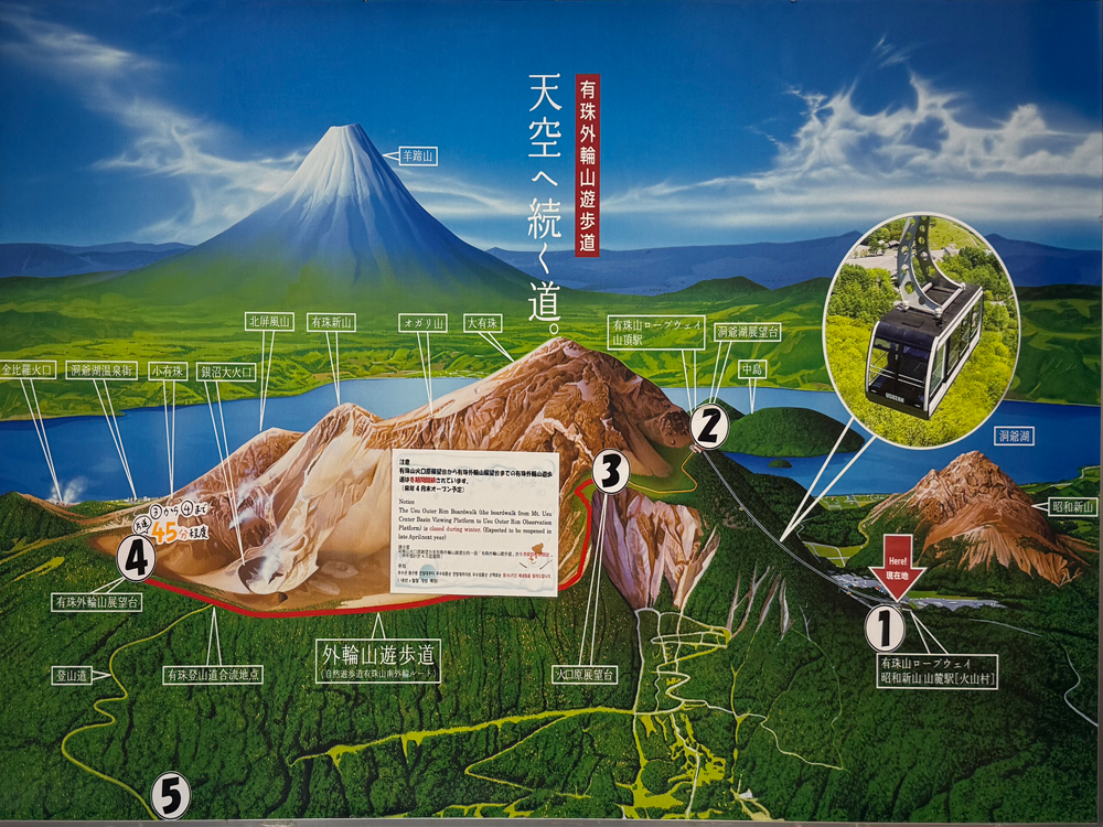 さらに先の外輪山遊歩道は、4月下旬頃にオープン予定。銀沼噴火口や有珠新山などを巡るハイキングが楽しめそうです。