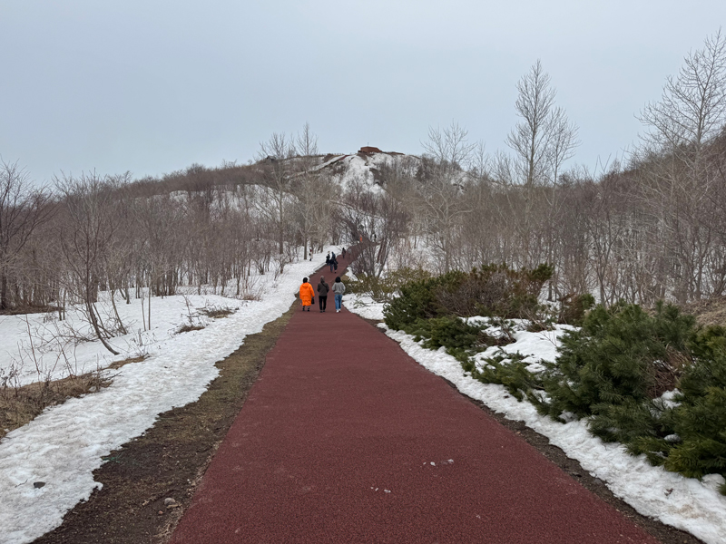 ロープウェイ頂上駅からは「有珠山火口原展望台」まで徒歩でアクセス可能。途中までは歩いて行ってみることにしました。