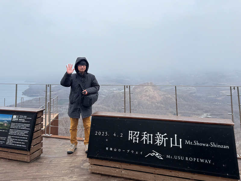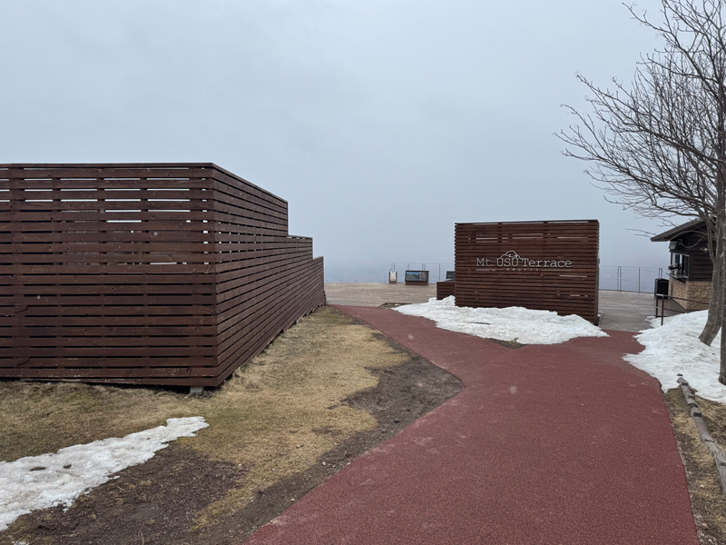 ですが…寒い!気温は氷点下3度近く。早々に引き返して、ロープウェイ駅の横にある「有珠山テラス」へ。