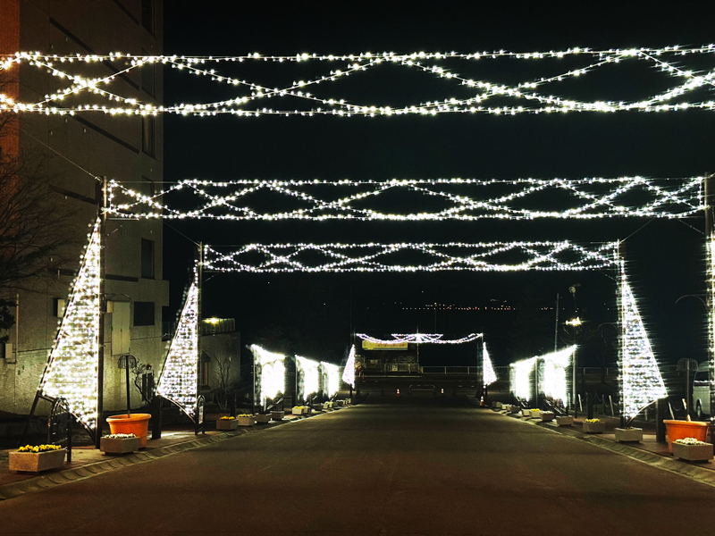 さて辺りが暗くなってきたので、温泉街を歩きながら夕飯のお店を探していると、ふと目に入ったのが眩いばかりのイルミネーション!